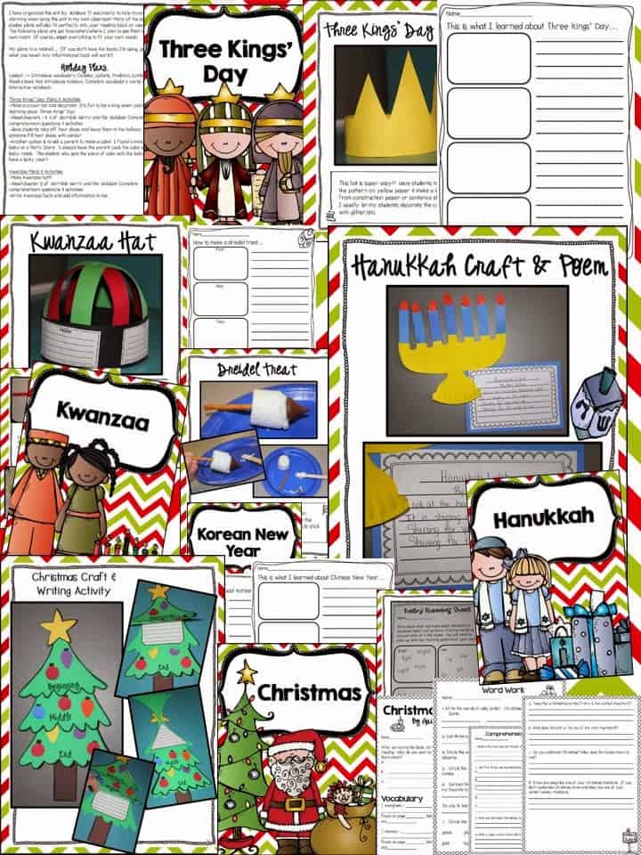 We completed a ton of other activities…. Horrible Harry and the Holidaze was perfect to teach us about Three Kings Day, Kwanzaa, Hanukkah, and Japanese New Year! I used all of the activities from this holiday unit!