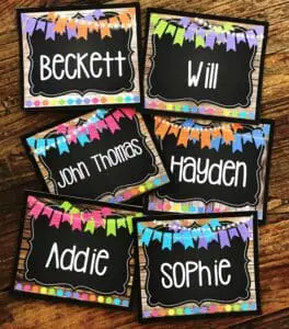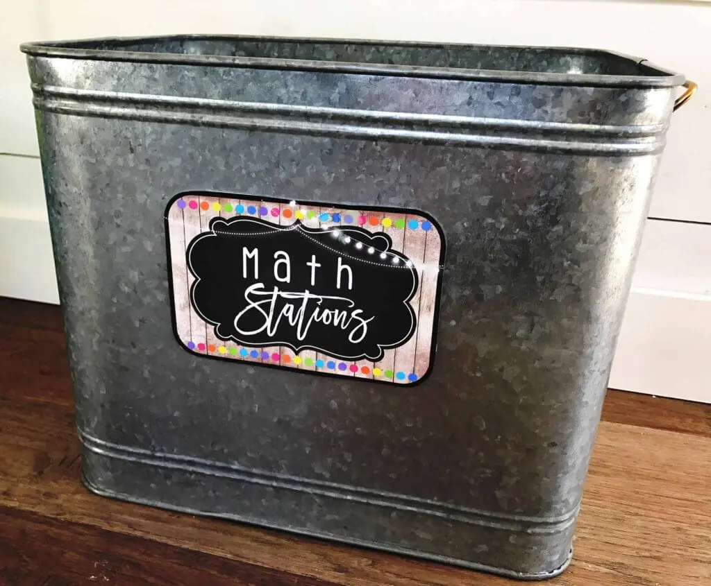I keep my station tubs in the front of the room… I found the lap desks at Michaels for only $5.