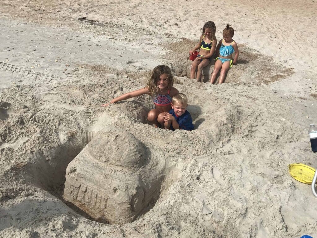 Every time we go to the beach my husband ends up trying to build something new in the sand everyday. This year he made a couch, a dump truck, and a large tunnel (not pictured).