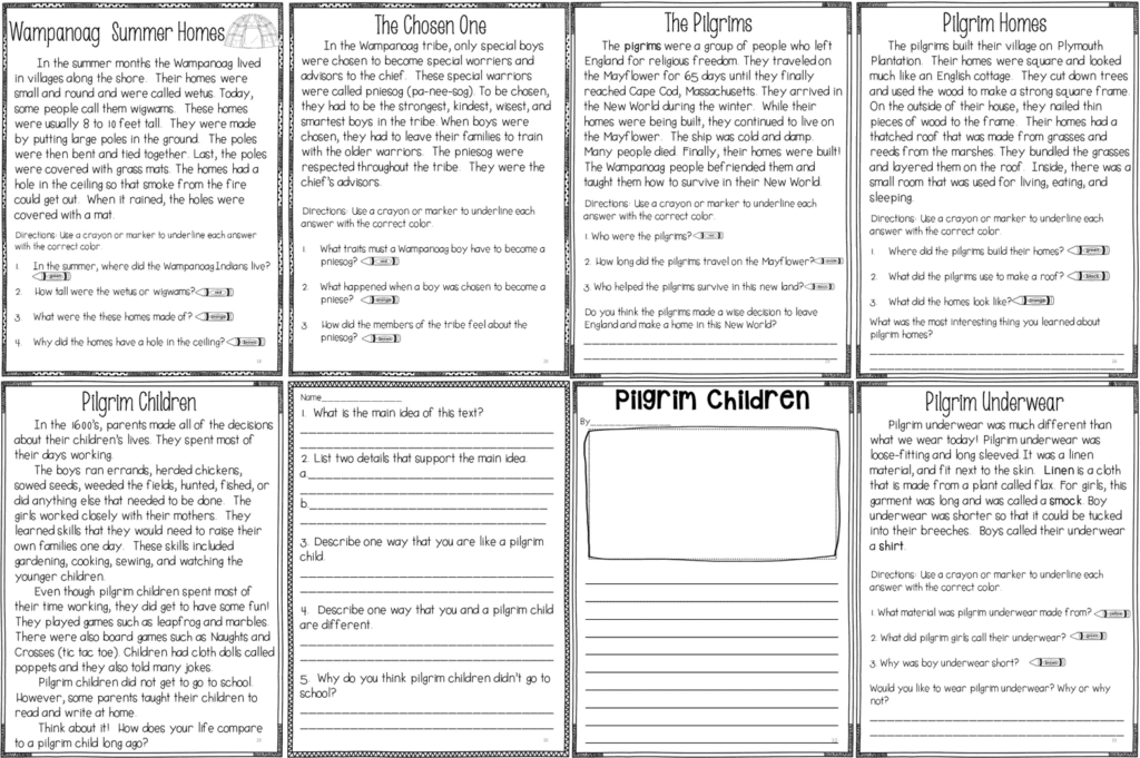 As we move on to learn about the pilgrims, my students will be pretending that they are pilgrim children and completing these cute books. They will write about their homes, chores, games, and food.